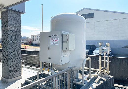 災害バルクは、LPガスのバルク貯槽・供給・消費設備を一体化した「災害対応型LPガスバルク供給システム」です。地震・津波や停電、都市ガス停止時も、備蓄LPガスで安全かつ迅速にエネルギー供給を安定的に継続します。