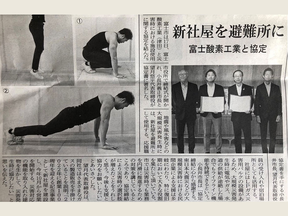 新社屋へのLPガス災害用バルク・発電機の設置に際し、富士市と一次避難所としての協定を締結