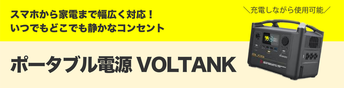 在宅の備えの2つ目として、静岡県東部を知り尽くした富士酸素工業がおすすめするポータブルバッテリーが、三菱電機の「ポータブル電源VOLTANK」です。