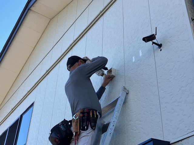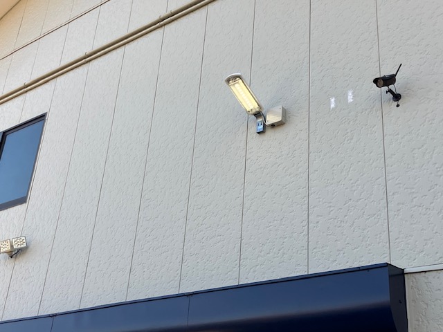 工場側は明るめの防犯灯を選定し、暗くなると自動点灯するタイプを設置しました。事務所裏側は近隣に迷惑が掛からないよう、ON/OFFスイッチを新たに設け、必要な時だけ点灯できる照明を設置しました。