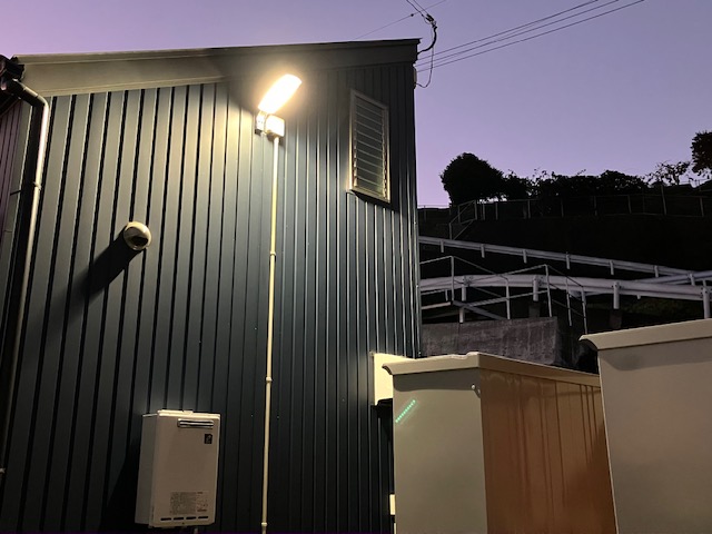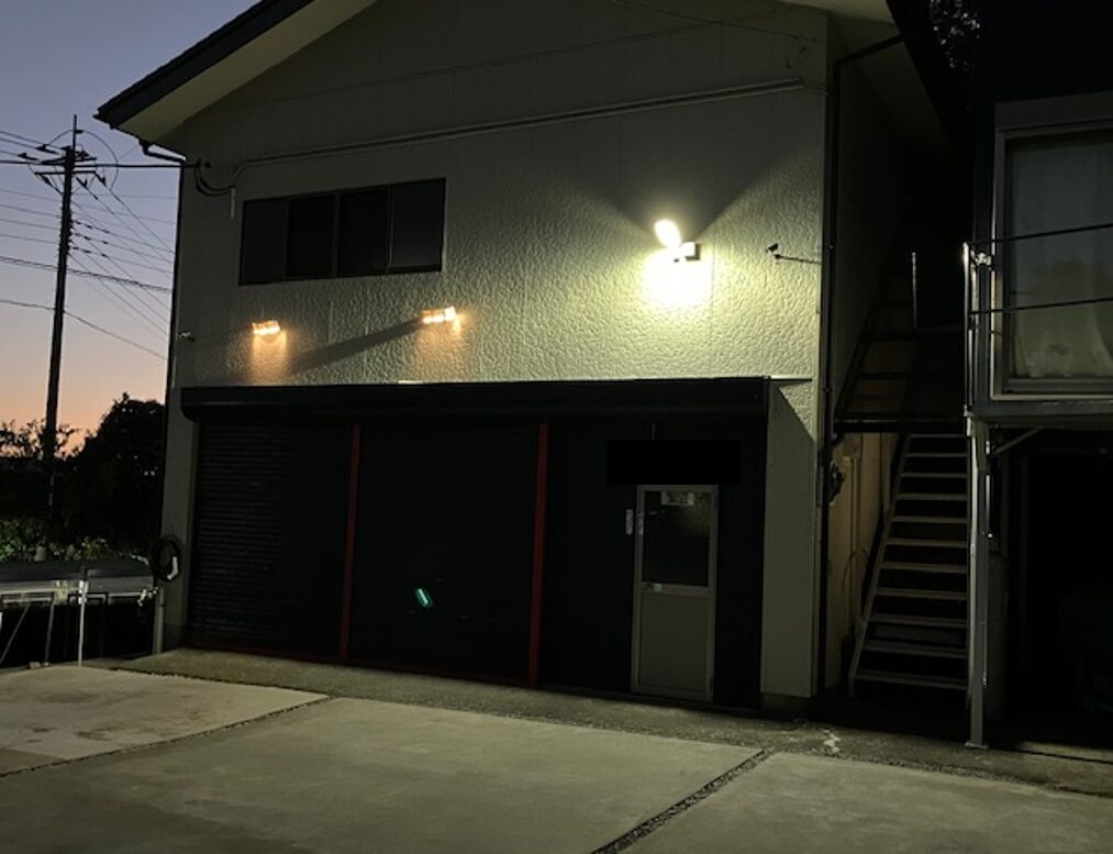 また、事務所裏側に物置があり明かりが一切なく、夜間は暗い状況でした。物の出し入れをする場所のため、こちらにも照明を設置したいとのご希望でした。
