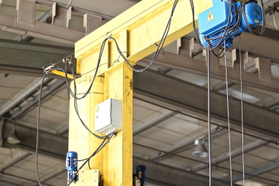 工場の現場や荷役作業で広く使用されるジブクレーン。柱(マスト)を中心に腕(ジブ)を旋回させることによって、限られたスペースでも効率的に荷物を運搬できる便利な機械です。しかし、このジブクレーンを安全に使用し続けるためには、「たわみ」の発生に注意しなければなりません。